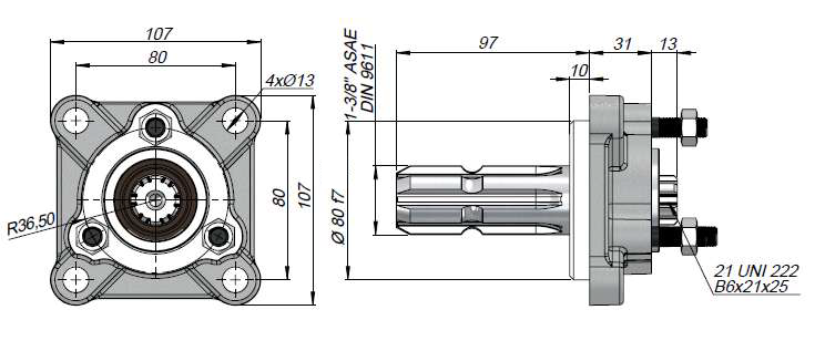 ADAPTATEUR DE PRISE DE FORCE (P.T.O) POUR POMPE UNIVERSELLE EN FONTE – MANCHON MALE – FIXATION A 3 VIS