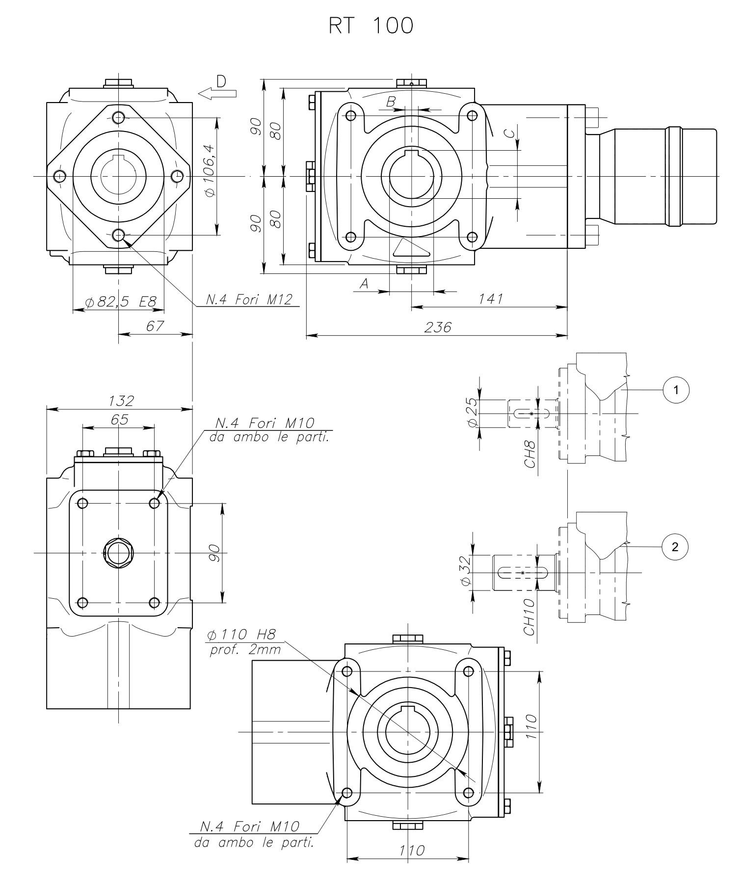 REDUCTEUR – MULTIPLICATEUR RT100 POUR MOTEUR HYDRAULIQUE MP/MR/MS RAPPORT 3,1:1