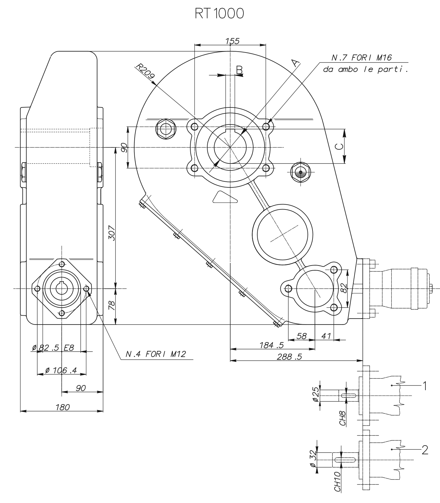 REDUCTEUR – MULTIPLICATEUR RT1000 POUR MOTEUR HYDRAULIQUE MP/MR/MS RAPPORT 38.7:1