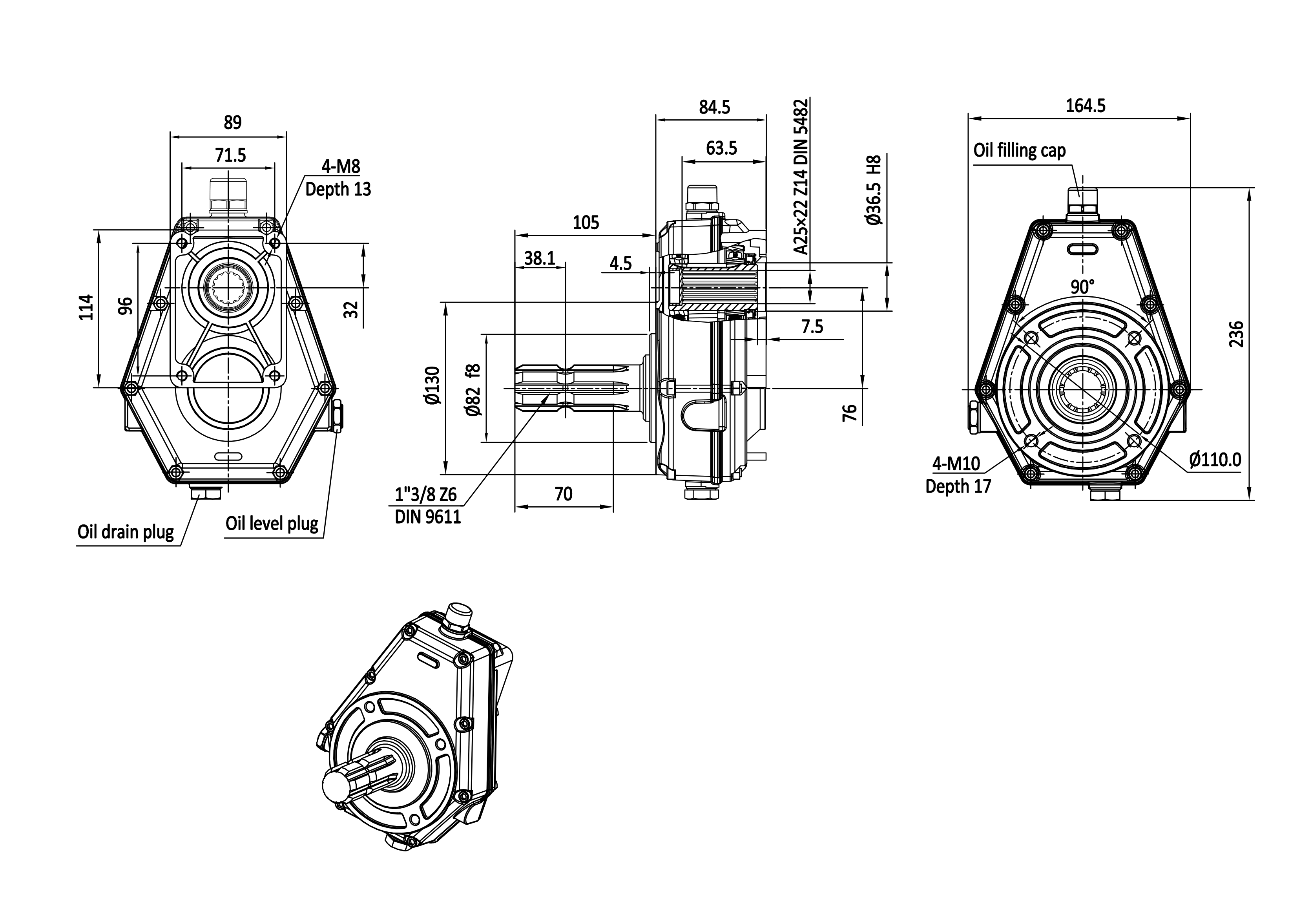 BOITIER MULTIPLICATEUR POUR POMPE HYDRAULIQUE DE GROUPE 2 – 1:3 MALE