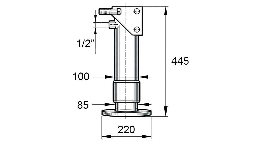 PIVOTANT PIED DE SUPPORT HYDRAULIQUE DOUBLE EFFET (Φ100x445 mm) - COURSE 250 mm - 6.000 kg