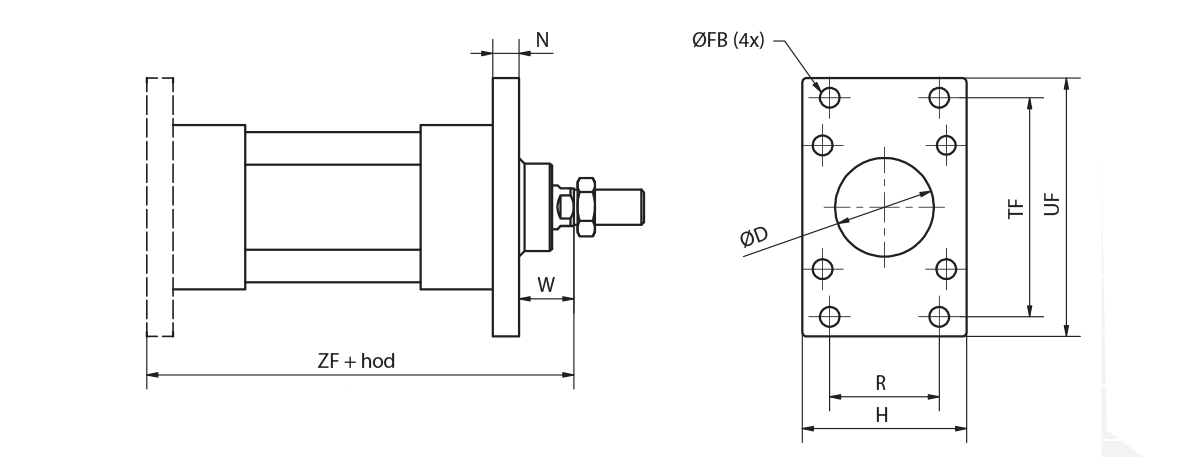 Montage NV | Φ TIGE | Φ FB | Φ D | H | UF | R | TF | W | N | ZF |