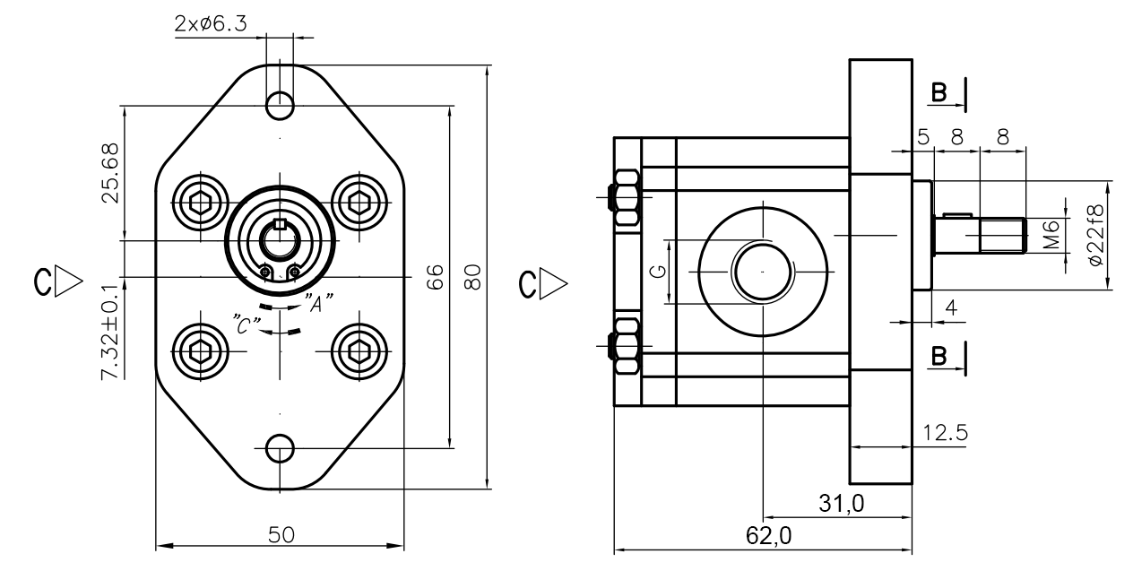 POMPE HYDRAULIQUE 00C1X032 GR.0 - 1cc - DROITE