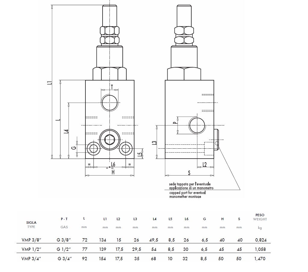RÉGULATEUR DE PRESSION HYDRAULIQUE VMP 3/4 10-180 BAR - 90LIT
