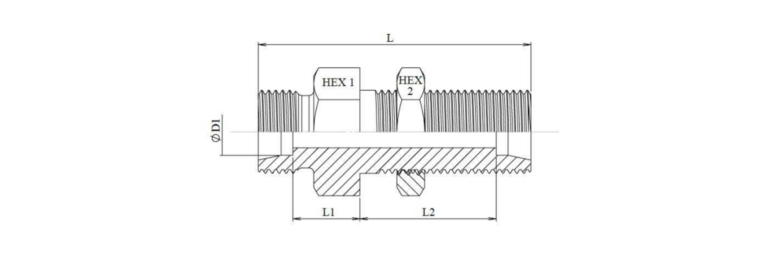 RACCORD DOUBLE TRAVERSÉE DE CLOISON HYDRAULIQUE (20S) M30X2