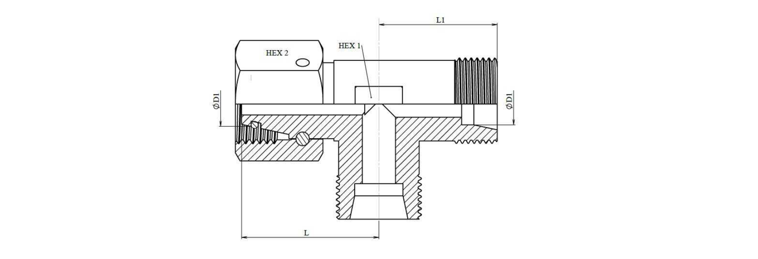 RACCORD EN T HYDRAULIQUE L-18 AVEC ÉCROU TOURNANT LATÉRAL M26X1,5
