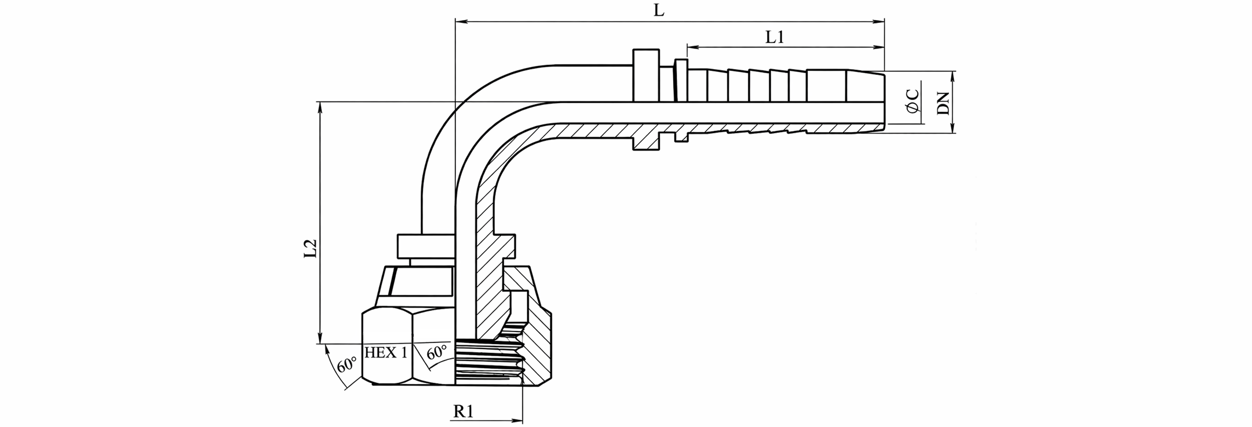 RACCORD HYDRAULIQUE BSP FEMELLE COUDE 90° DN32-1 1/4
