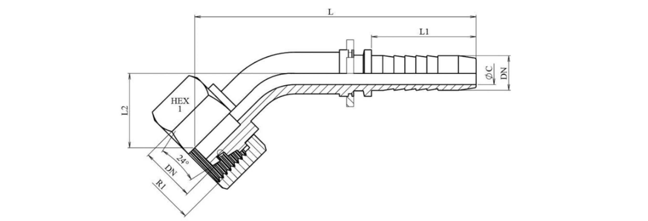 RACCORD HYDRAULIQUE DKOS 25 AVEC COUDE FEMELLE 45 DN19-M36X2