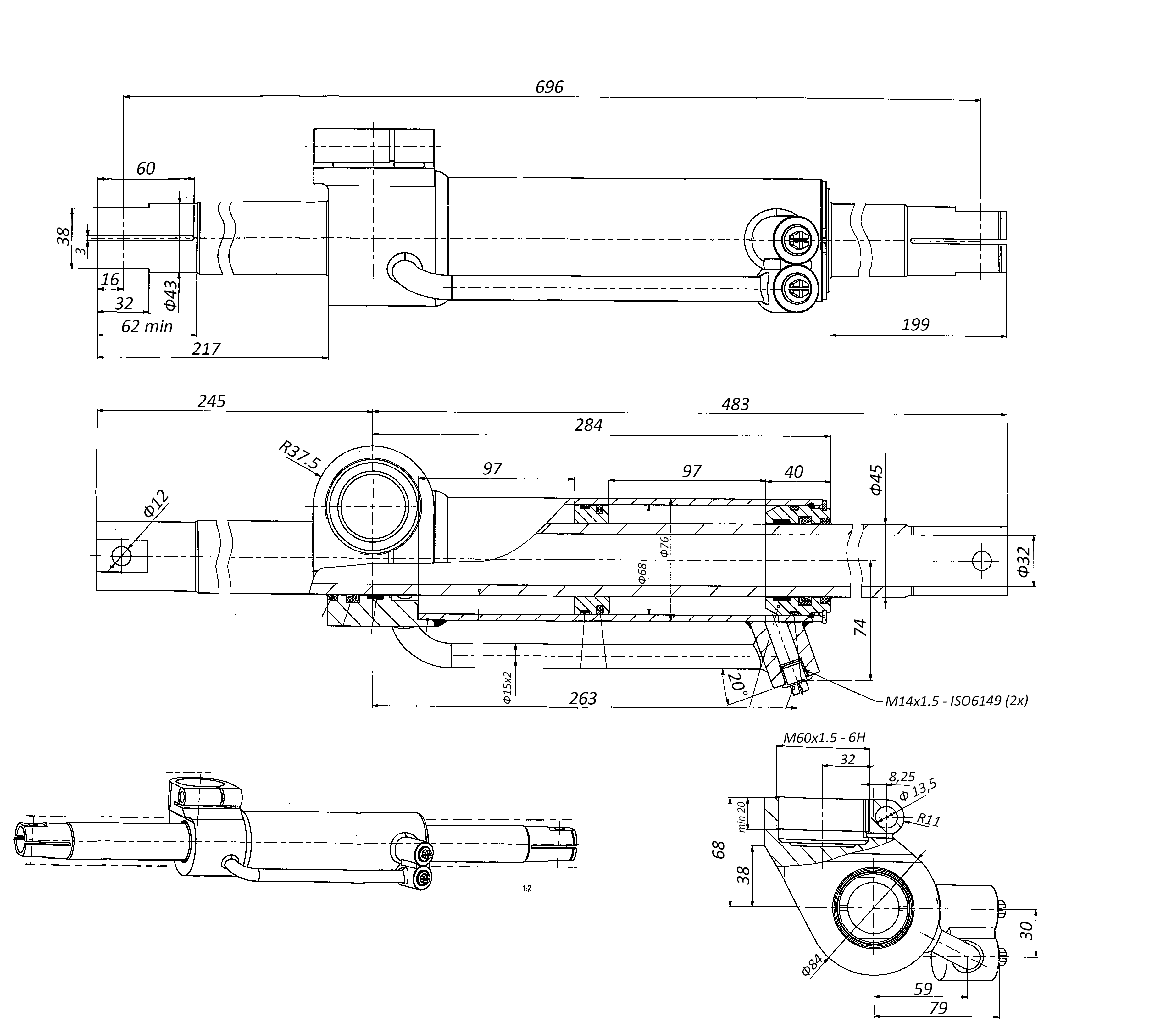VÉRIN HYDRAULIQUE DE DIRECTION MASSEY FERGUSON OEM-6202491M91, 3773713M91, 3763762M91