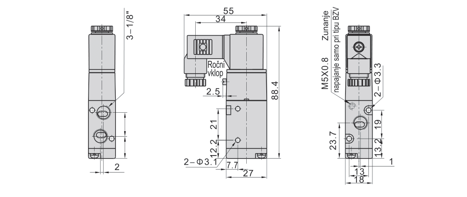 VANNE ÉLECTRO PNEUMATIQUE 3/2 MONOSTABLE 1/8 PRT-0532-BCV