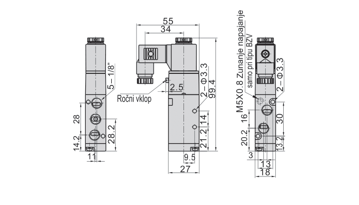 VANNE ÉLECTRO PNEUMATIQUE 5/2 MONOSTABLE 1/8 PRT-0552-BCV