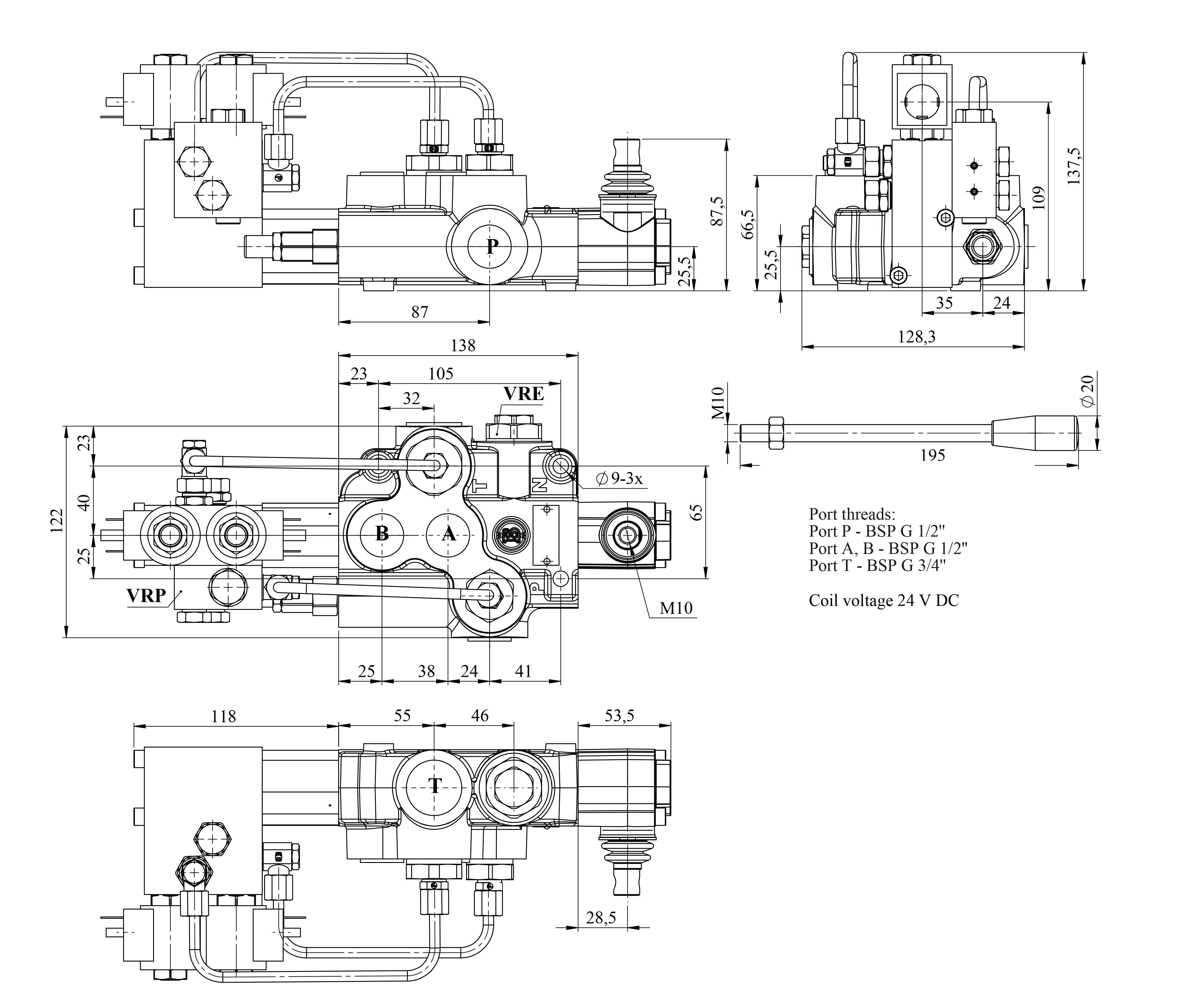 VANNE HYDRAULIQUE 1xZ80 - EO+12V