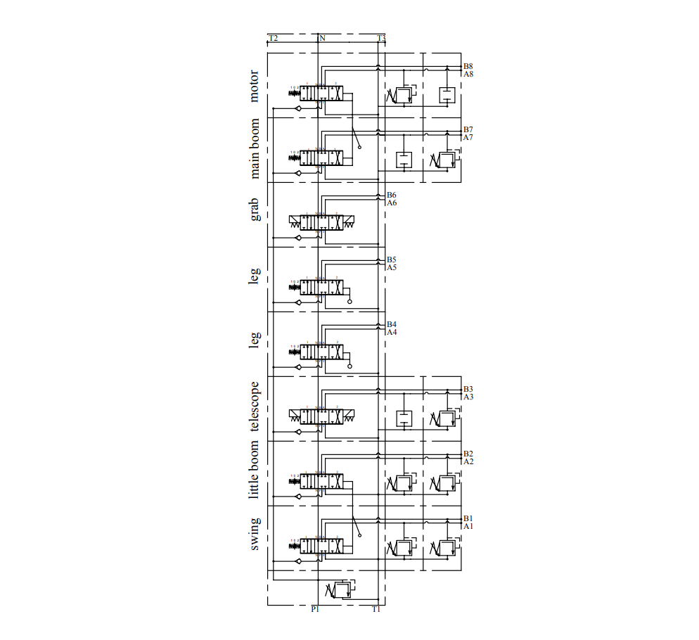 Le PC70 est une vanne empilable (sectionnelle) conçue pour une utilisation sur des remorques forestières équipées d’une grue (HIAB). Elle permet un contrôle à la fois mécanique et électronique. La vanne hydraulique est composée de huit sections.