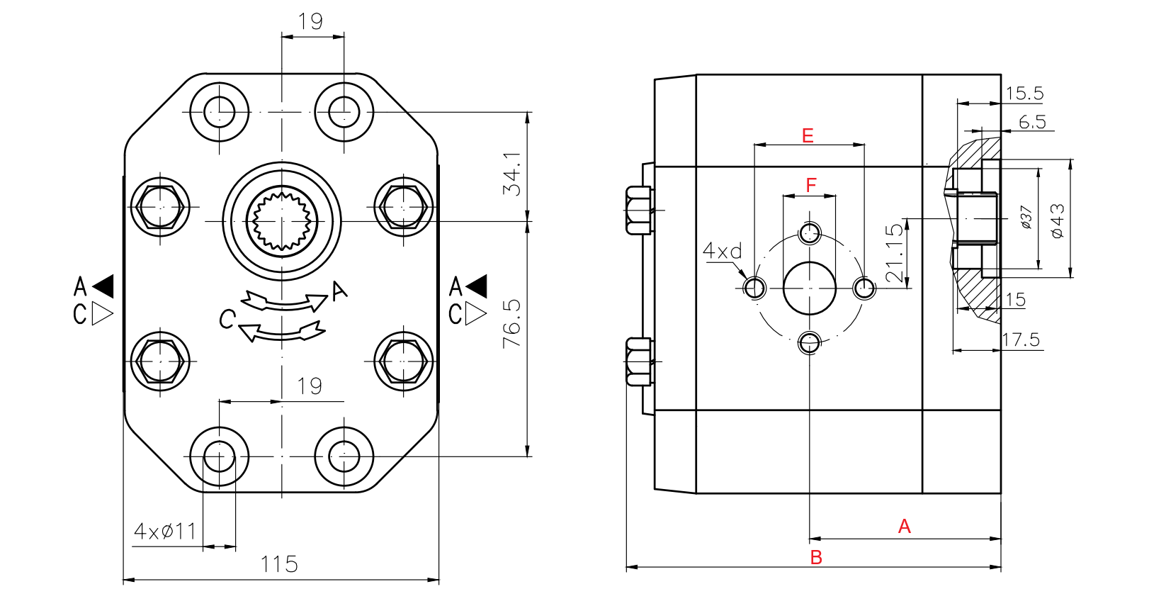 HIDRAVLIČNA ČRPALKA 30C46X242 REAR GR.3 46 CC DESNA