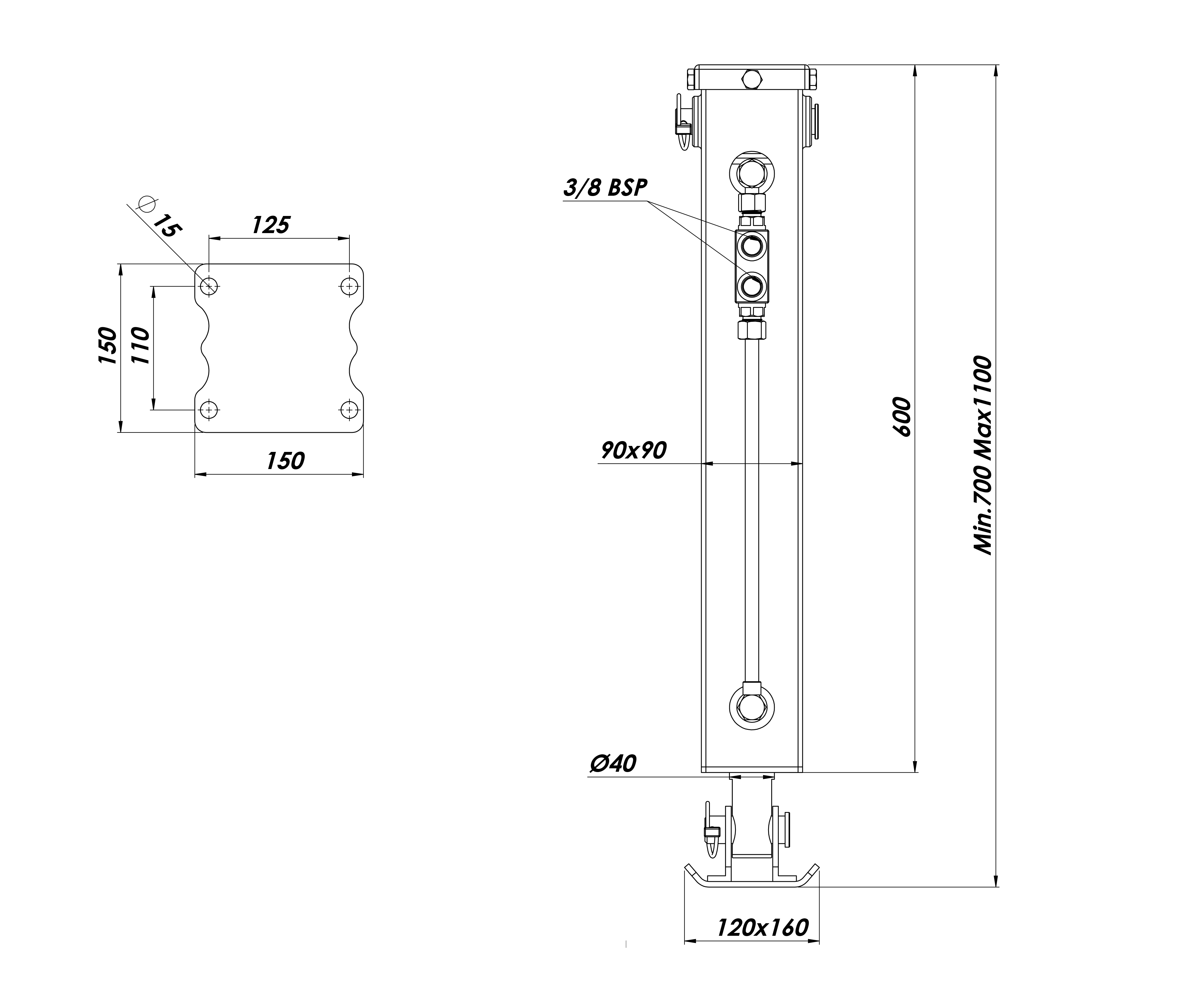 HIDRAVLIČNA NOGA DVOSMERNA 2,5 TON 420mm (90x90x600)