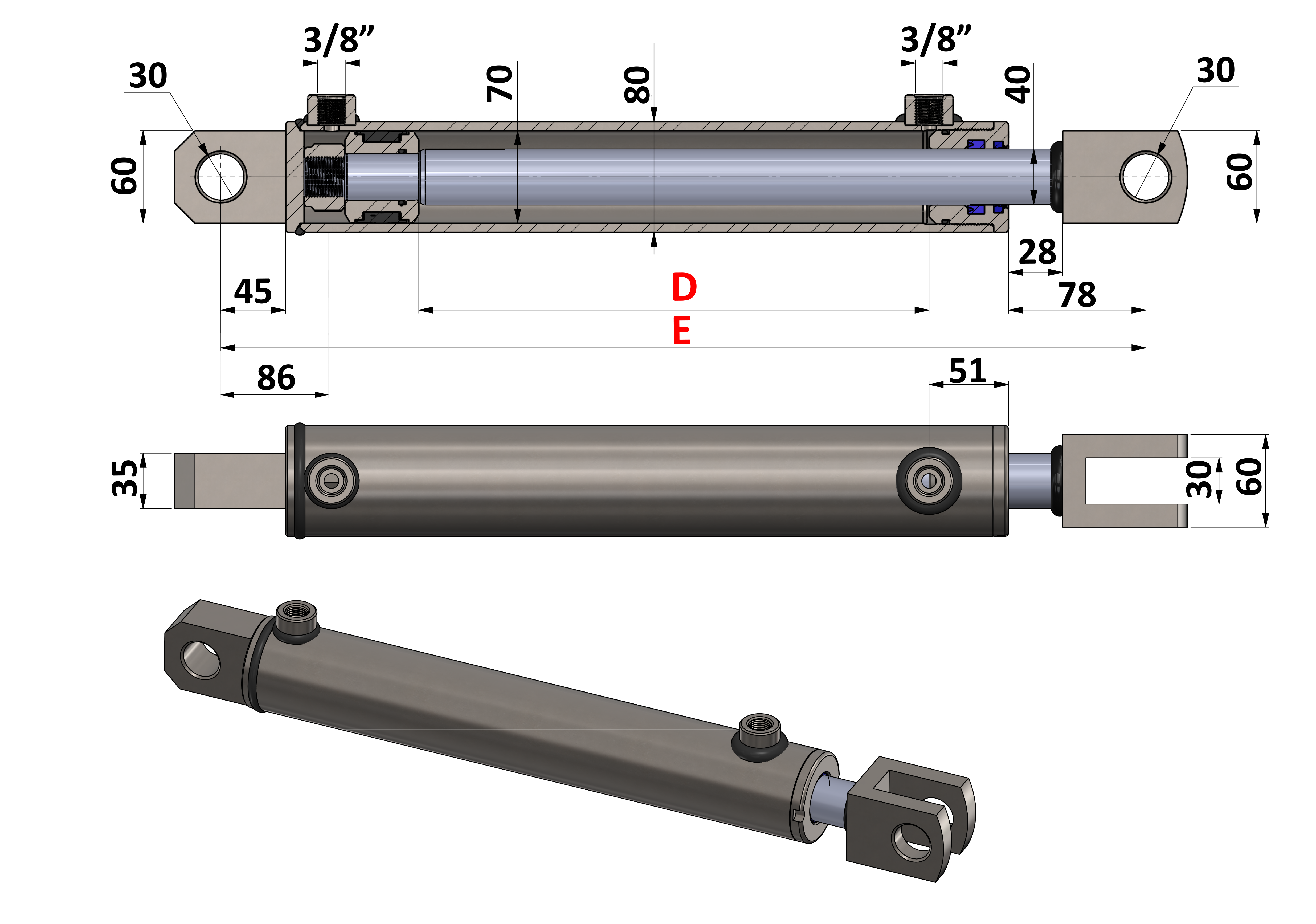 HIDRAVLIČNI CILINDER FORK 70/40-550