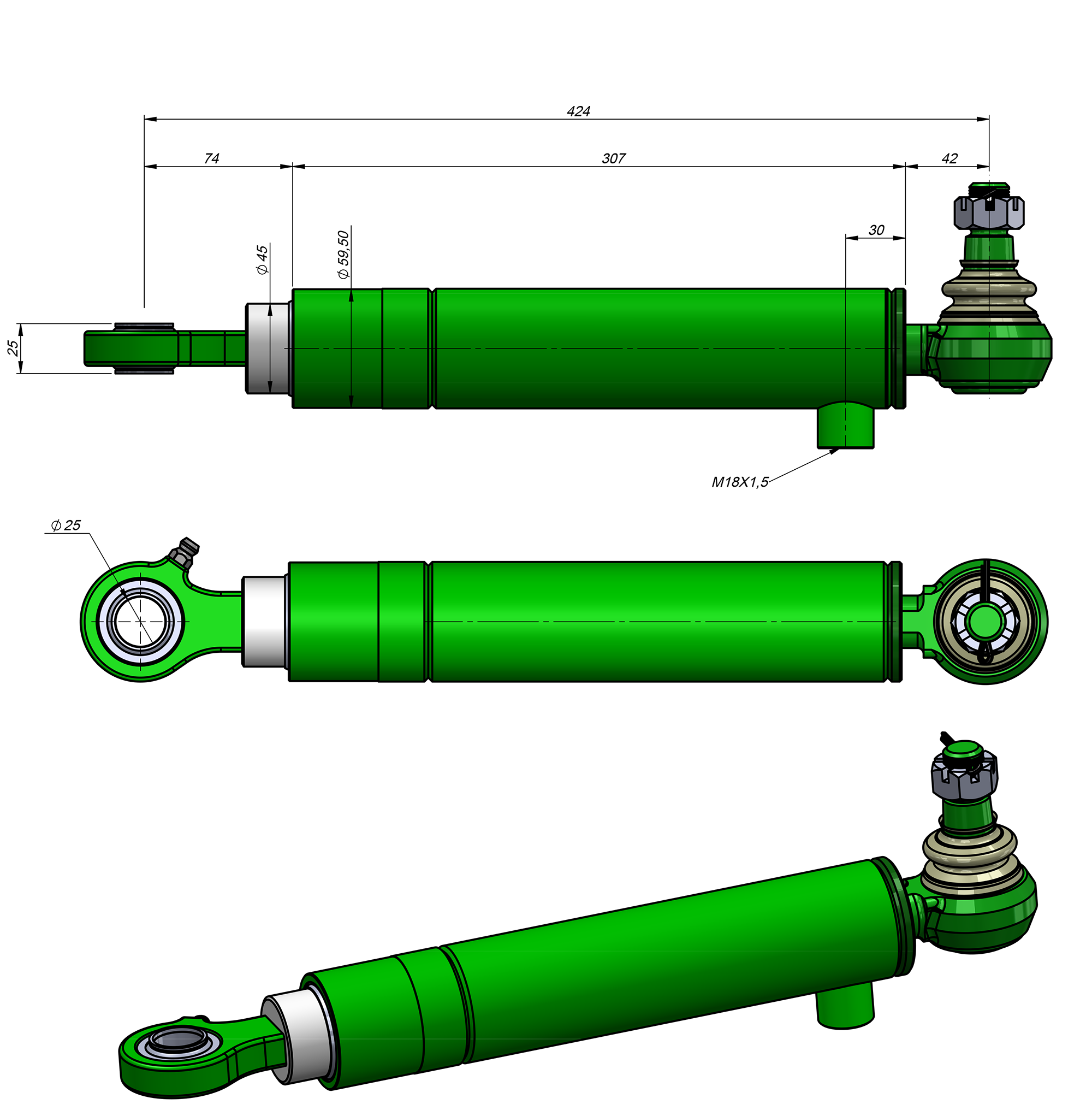 HIDRAVLIČNI VOLANSKI CILINDER JOHN DEERE OEM-AL61553, AL34542, AL36565, AL112919, RE17356
