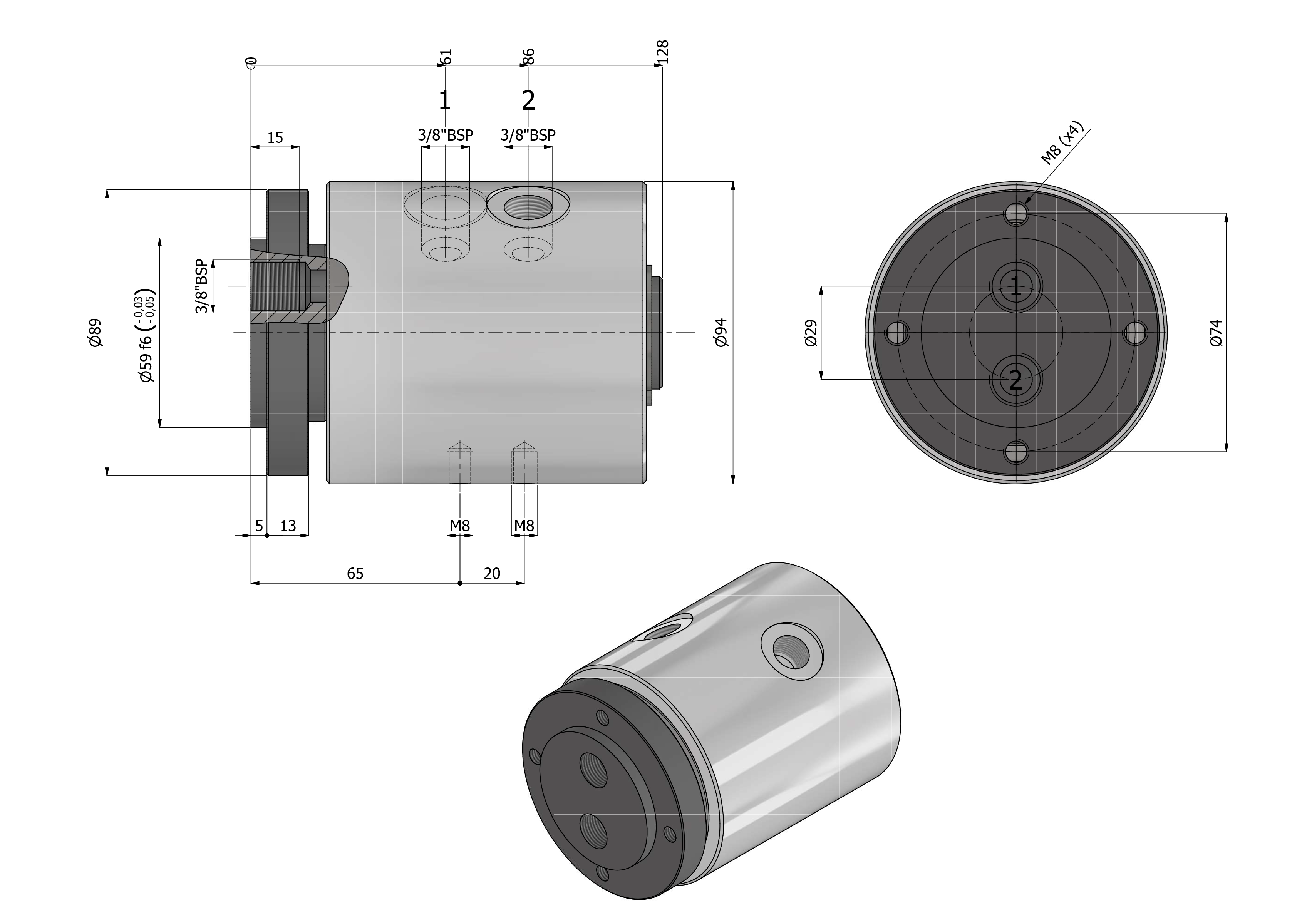 HIDRAVLIČNI VRTLJIVI PRIKLJUČEK 2WAY IH2037-GY6LS 3/8 30lit/min 350vrt/min 350BAR