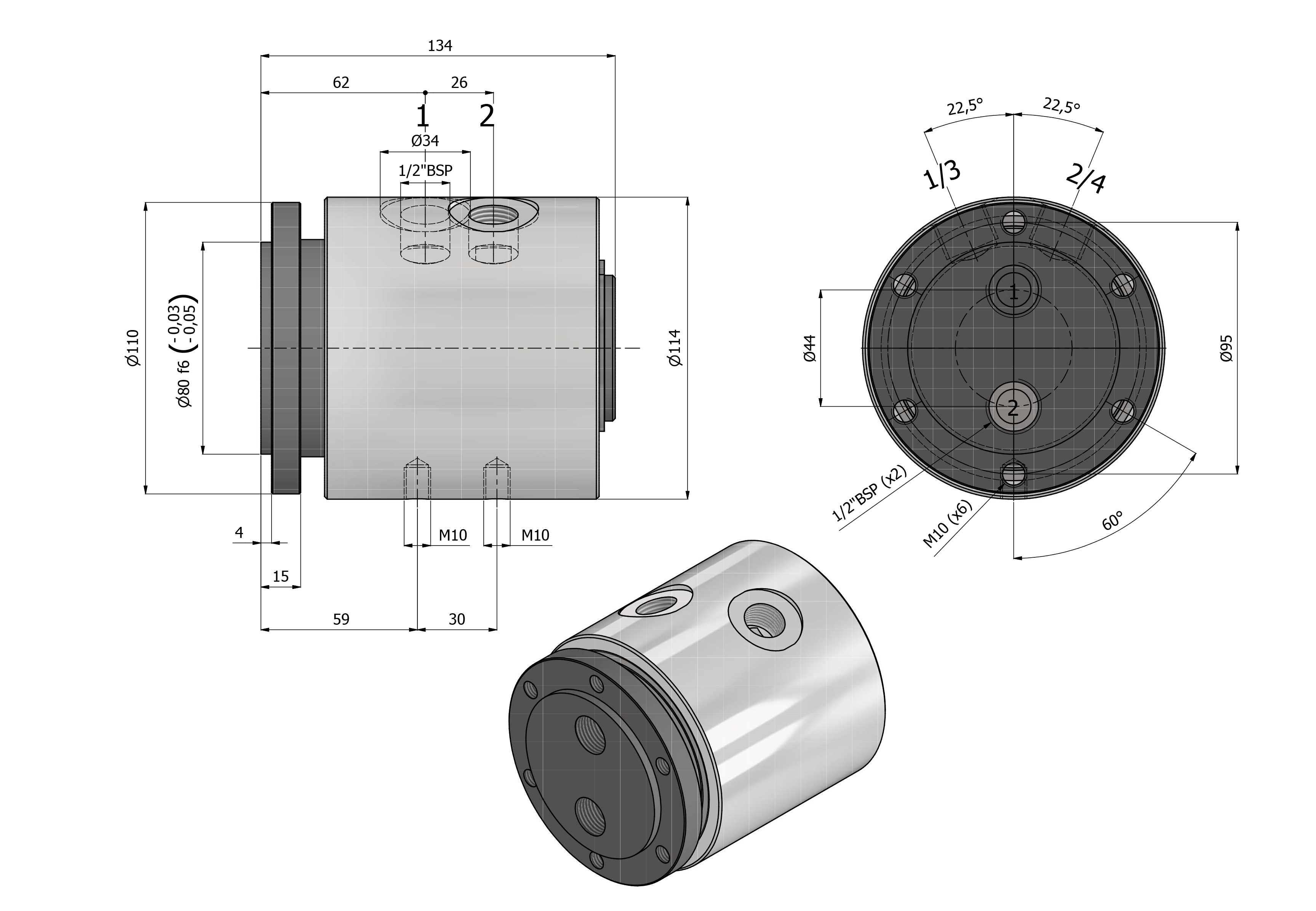 HIDRAVLIČNI VRTLJIVI PRIKLJUČEK 2WAY IH2050-GS6LS 1/2 45lit/min 250vrt/min 350BAR