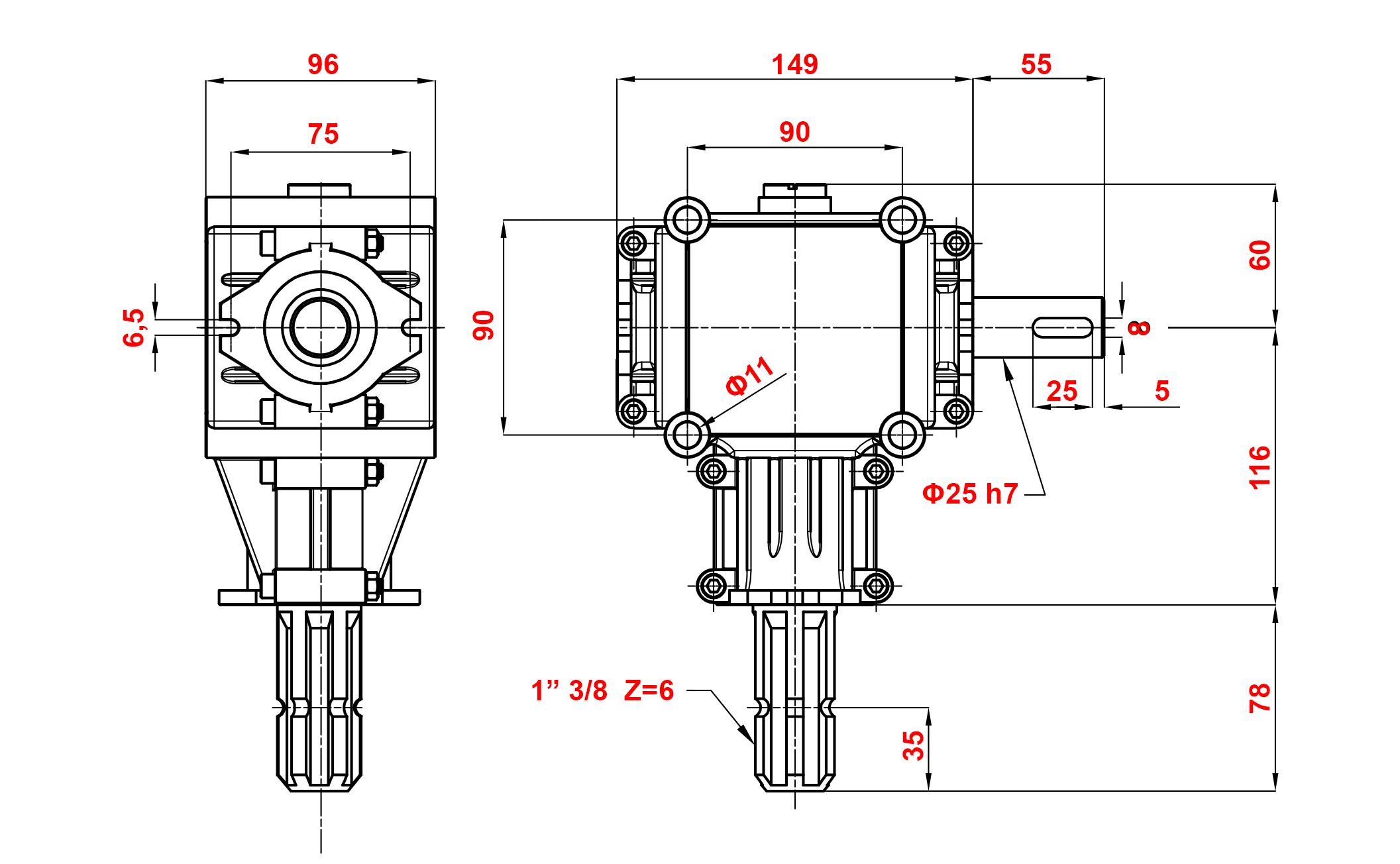 KOTNI REDUKTOR PTO 1:2,88 (10HP-7kW)