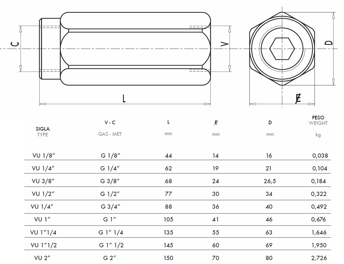 NEPOVRATNI VENTIL CEVNI VU 1/2 - 70lit