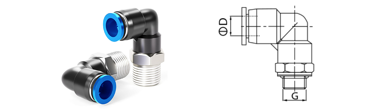 PNEVMATSKI VTIČNI KOTNI PRIKLJUČEK TPA Z NAVOJEM GL-038-16