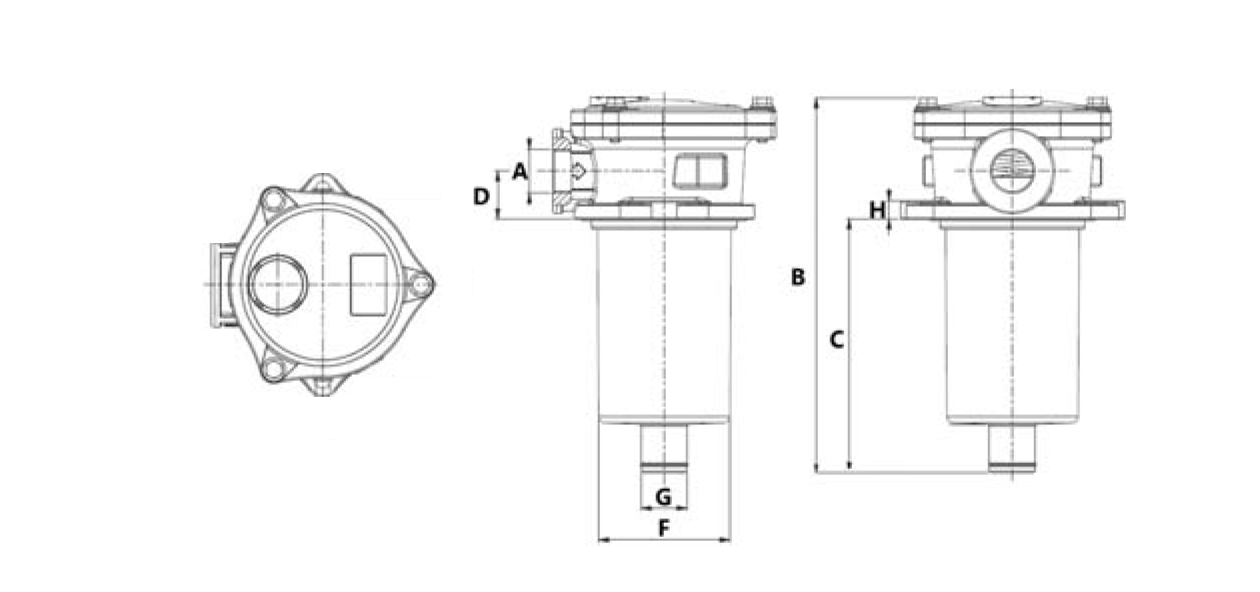 Povratni filter se namesti na rezervoar in opravlja funkcijo zadrževanja umazanije pred povratkom v rezervoar. Filter je opremljen s posebnim ventilom, ki omogoča obvod toka olja v primeru prevelike umazanije.