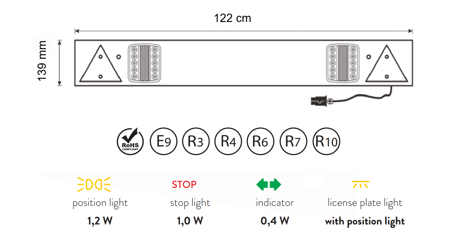 Zanesljiv set LED luči za priklopnike, ki združuje vse glavne svetlobne funkcije v eni enoti in zagotavljajo odlično vidljivost ter varnost v prometu. Set odlikuje nizka poraba energije in dolga življenjska doba.