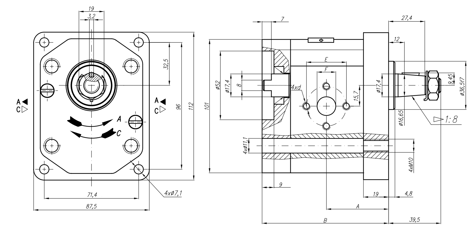 HIDRAVLIČNA ČRPALKA 20A19X067 FRONT GR.2 19 CC LEVA