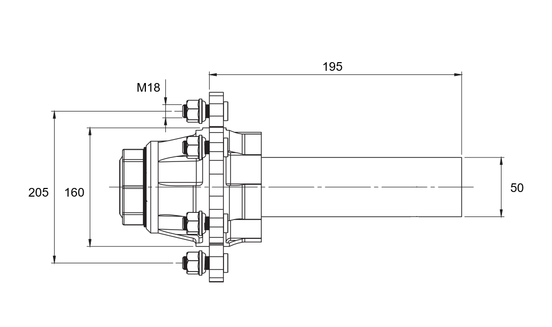 Zaradi robustne izdelave in zanesljive konstrukcije je primerna za uporabo na tovornih in delovnih prikolicah, industrijskih podvozjih, transportnih okvirjih ter drugih tehničnih rešitvah, kjer je potrebna stabilna in vzdržljiva osna podpora kolesa.