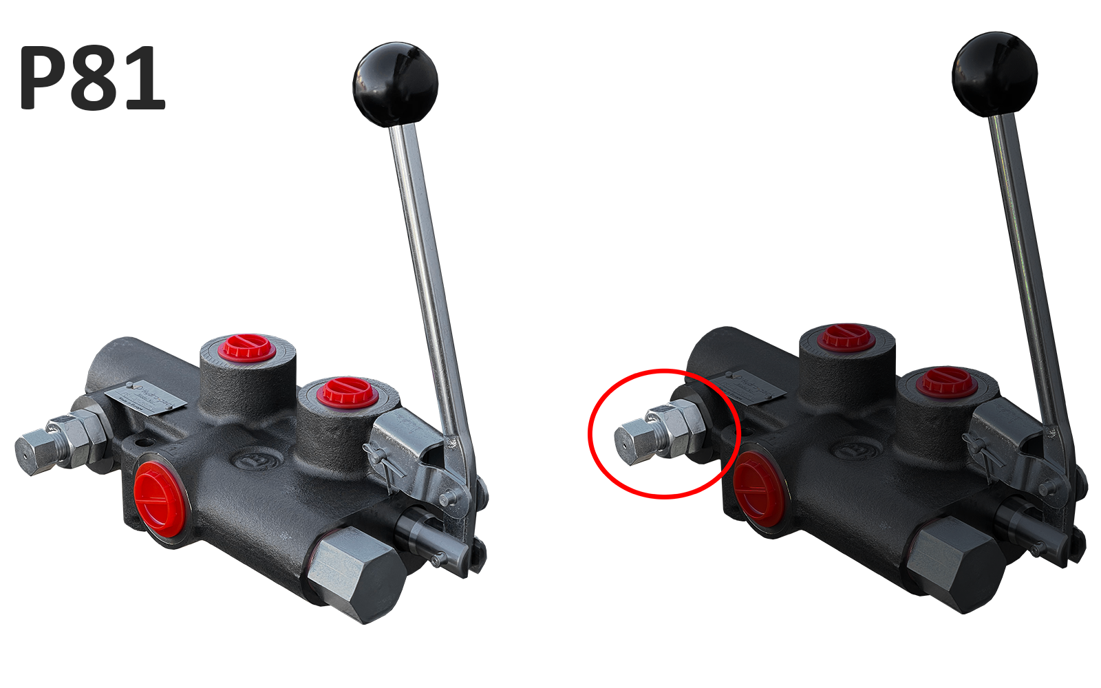 Ta funkcija omogoča tlačni izključitveni sistem (izmet ročice v nevtralno pozicijo). Ko se vreteno ročno pomakne v tlačni izključitveni sistem je olje preusmerjeno v "B" delovni port (vstran od ročice). Ko tlak v portu “B” preseže nastavljeno vrednost, tlačni izključitveni pin sprosti krmilno ročico v nevtralno pozicijo.