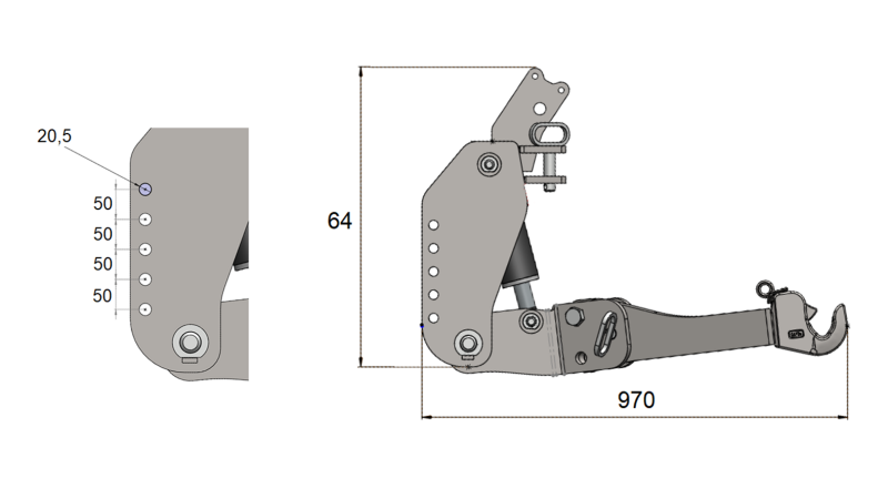 UNIVERZALNO VPETJE (950mm) ČELNE HIDRAVLIKE KAT.2 - KAT.3 ZA TRAKTOR