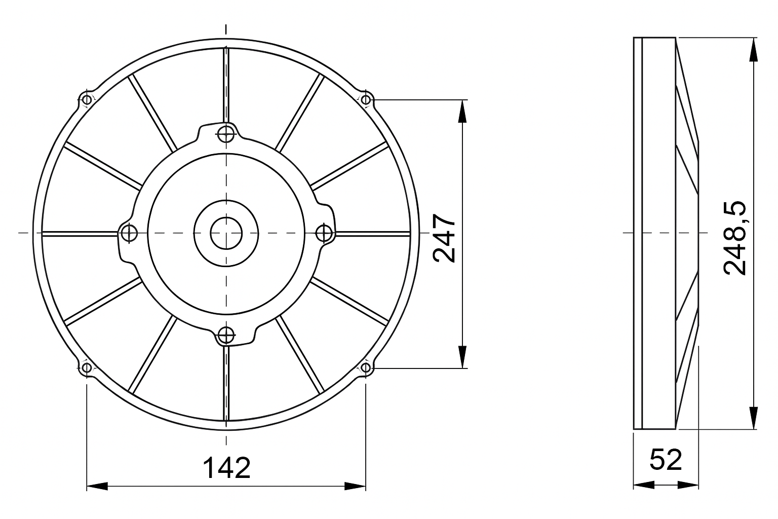 VENTILATOR AKSIALNI 255mm POTISNI 12V