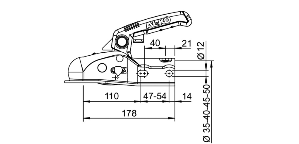 Vlečna kljuka "AL-KO" za avto prikolico s priključki fi35,40,45.