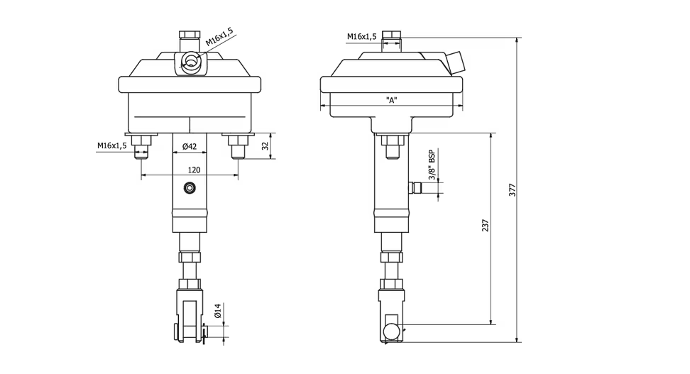 Je kombinacija standardnega pnevmatskega zavornega valja in enosmernega hidravličnega cilindra, primerna za hidravlični in pnevmatski nadzor zavorne osi.Uporablja se za hidravlično in zračno zaviranje priklopnih vozil brez zunanjega vzmetenja.Vgrajene ima balansirane vzmeti. Ima hitri odzivni čas pri udarcu.